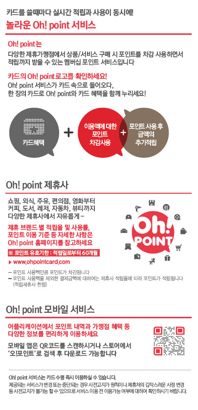 ※ 단, 신규 발급한 회원은 카드 수령월을 포함하여 2개월(수령일~다음달 말일)간 이용금액에 상관없이 서비스를 제공합니다.